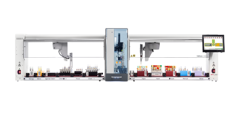 A compact bench top robotic workstation designed for the preanalytical management of incoming sample collection tubes.