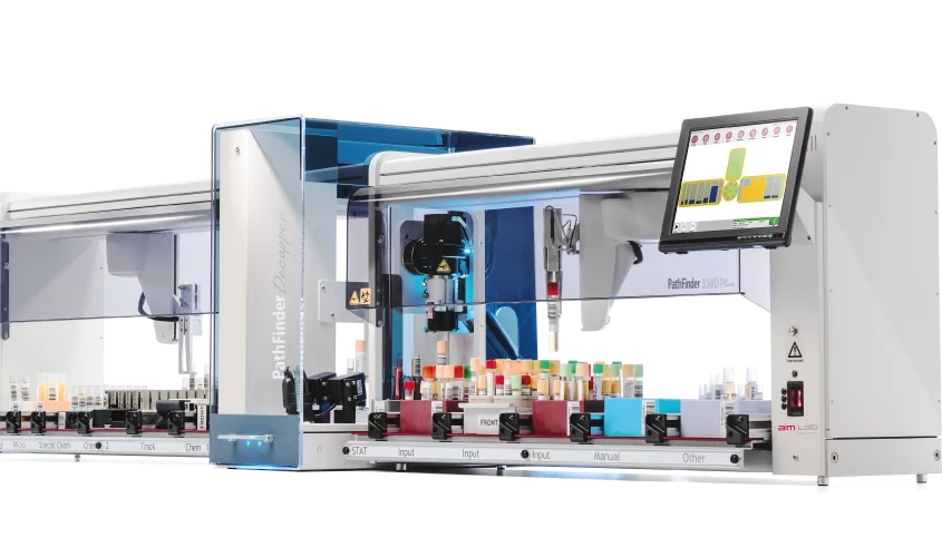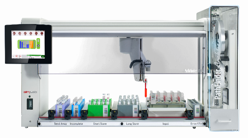 The PathFinder™ 350A is a benchtop robotic workstation designed for the post analytical management of sample tubes.