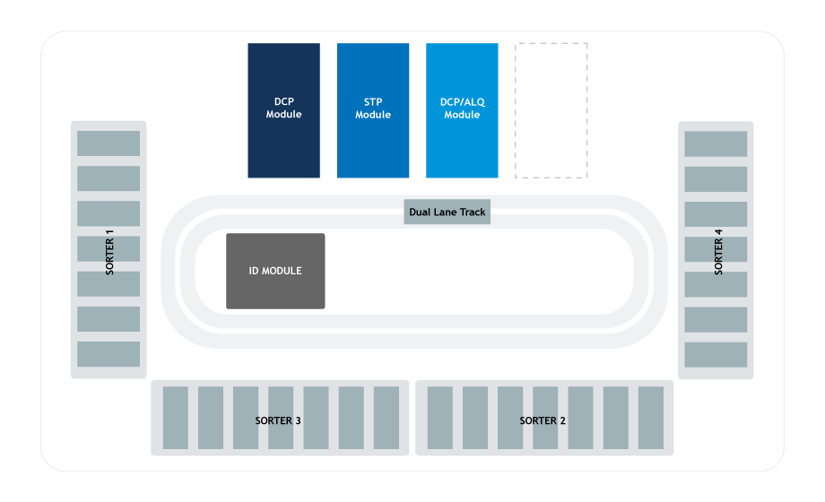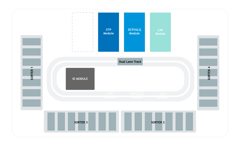A dual track design allows parallel sample processing to improve overall efficiency. So for example, samples that require just sorting bypass sample queues for aliquoting or foil sealing. This maximizes system throughput particularly when processing samples with mixed workloads.